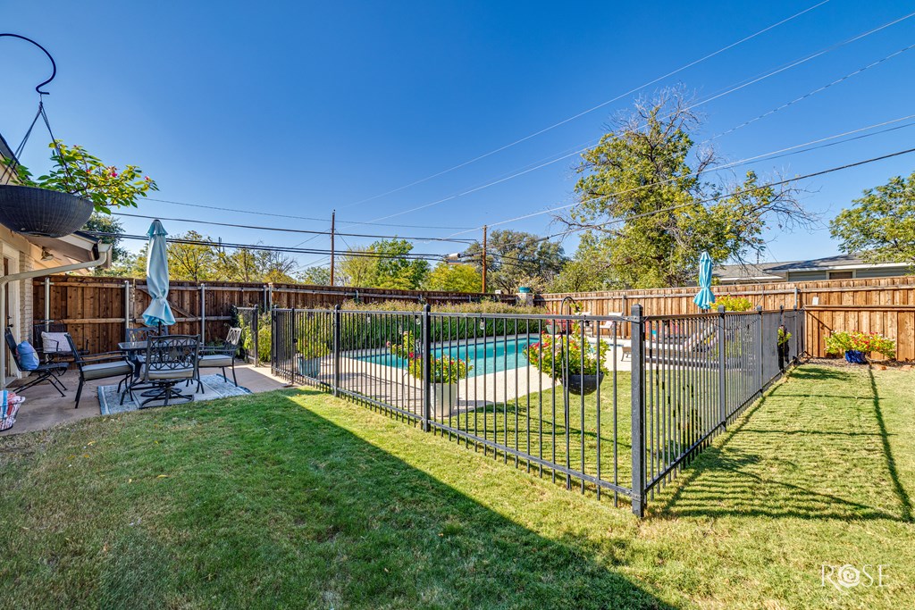 Welcome to this stunning home in the heart of San Angelo! Situated on a spacious corner lot, this modern brick home showcases gorgeous updates and stylish finishes throughout. Inside, you'll find wood laminate flooring that flows seamlessly through the open layout, along with granite countertops in both the kitchen and bathrooms, adding sophistication to every space. Step outside to your own private retreat — a large backyard featuring a patio area, lush lawn, and a gated sparkling pool, perfect for entertaining or relaxing. The privacy fence ensures seclusion, while extra parking in addition to the two-car garage provides ample space for guests or additional vehicles. With its modern updates, prime location, and beautiful outdoor living spaces, this College Hills gem is one you won't want to miss!